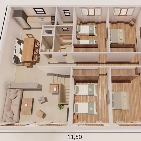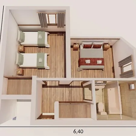 Em hotel os hóspedes podem escolher entre Quarto triplo, Quarto quádruplo e Apartmento com 1 dormitório.